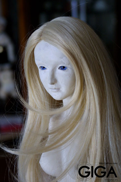 全然仕上がらないのですが、3体目の子です。とりあえず、仮組みが終って細部の調整をしている最中です。今回は構造的に下半身、特に股関節と膝関節には荒木元太郎さんのユノスの構造に近いものにしてみました。肘は写真撮影時の可動範囲を広げたかったので、二重関節にしてみましたが、こちらも、まだまだ検討の余地は大きくあります。とりあえず、今はウイッグを仮に着けていますが、これも貼り付けで仕上げる予定です。