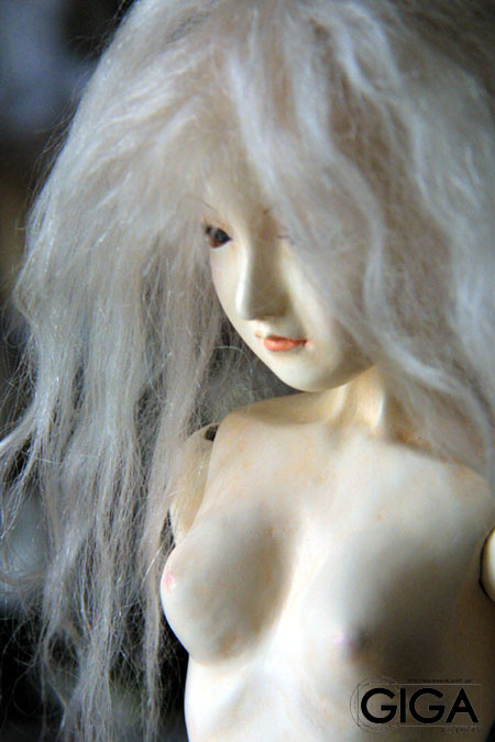 先に仕上がっちゃいましたけど、4体目の子です。今回テスト的に粘土にダイソーの「木粉ねんど」をベースに使って、細かい仕上げなどはラドールと木の粘土を使って仕上げました。とにかくソフビやABSの樹脂の人形かって位軽く仕上がっています。関節など薄い部分では木粉ねんどの強度を増すために乾燥後、瞬間接着剤を表面にしみこませているのですが、そのせいかこすれるせいか分かりませんが、やや胡粉の定着が弱く厚塗りした部分で剥がれて来た部分があります。胡粉は隠ぺい力が低いので、次回は、模型用の白か肌色のサーフェーサーを下地に使って胡粉で仕上げていきたいと思います。 |