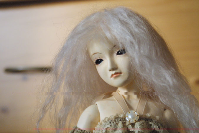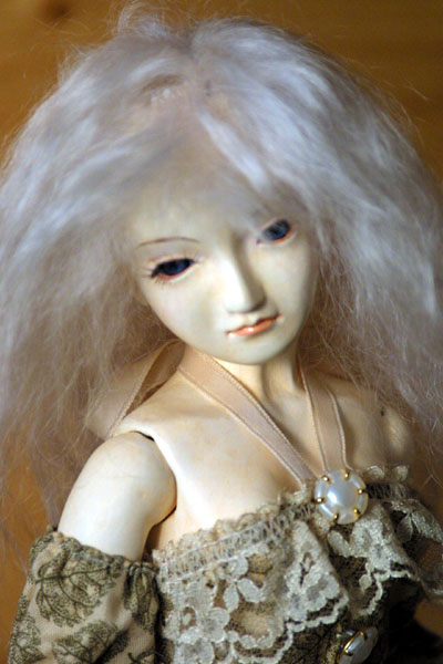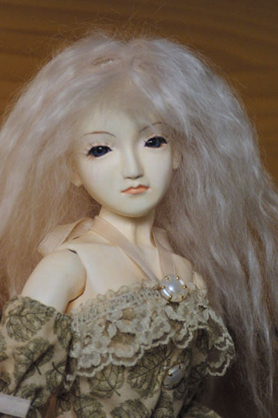 DATA: 創作人形 M04 約45cm 木粉ねんど、石粉粘土 (胡粉 油彩 アクリル) グラスチックアイ(12mmブルー) (2004年製作)