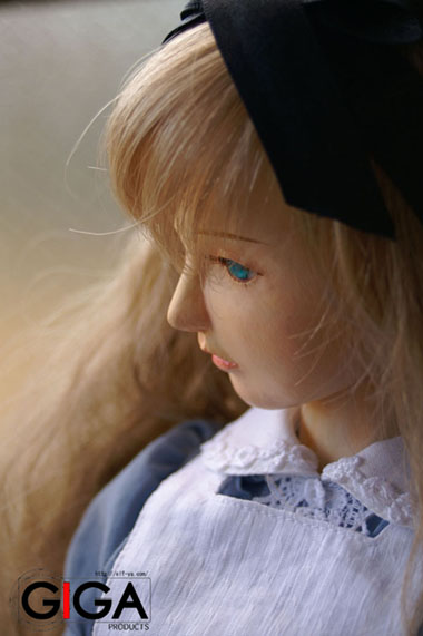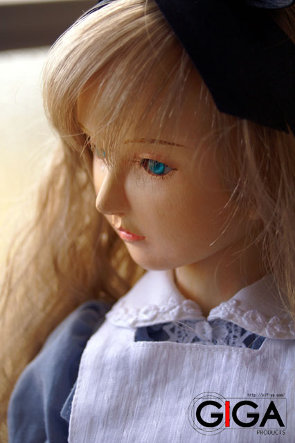 今年に入ってから、創作人形教室展用の新作を作らないとまずいよなぁ・・・って感じで、造りました。ベースは木の粘土+ラドールにマイネッタを重ね、胡粉、今までよりも少し濃い目にエナメルで仕上げています。目は牧子さんのグラスアイを使ってます。