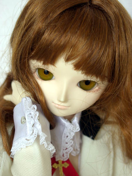 | ■販売時データー ★販売物のセット内容★ 写真のヘッド・ボディ一式・ウィッグ・グラスアイ、ボディ…B−03、腕・手首…サーティーンデフォルト、脚…L−02、足首…FO−01、グラスアイ…ヘーゼル 22o、ウィッグ…キャロットのツーテールをカスタム、衣装…GIGA「野望女学院制服」(デザイン:蘭宮 涼 縫製:ノアドローム)、靴…ドイツ製ニーハイブーツ、(スタンドは含まれません) ★ヘッドのカスタマイズについて★ F−13をベースに、サーティーンシリーズ風のアレンジをしています。顔の下半分は元の形状とは全く変わっており、ほぼ完全に彫り直してあります。おおよそ上唇の先端が、元の前歯のモールドより少し深い位置になります。アイホールはあまり変更していません。目元の膨らんだ部分を若干削った程度です。 ★メイクアップについて★ メイクはMr.カラーをエアブラシで吹いてあります。だいたいサーティーンシリーズのデフォルトに近い感じの、ナチュラルメイクで仕上げています。シャドウの上にクリア層を重ねて、軽く研ぎ出しした後トップコートに艶消しクリアを重ねています。睫は上が付け睫で、下はペイントしています。グラスアイの固定は練り消しゴムです。仕上がった感じが髪を下ろした某超有名キャラに似ているかも?と思ったため、「明日香(仮)」としましたが、あえて瞳の色は変えてあります(苦笑)。 ★ボディについて★ パーツ構成は、ヘッドは、13番の削りだし、ボディは3番、脚は2番、足は1番、腕と手は13SDのモノとなっています。パーティングライン落とし、滑り止めとして間接部へのシリコンゴム張り付け、6mmおよび3.2mmの自遊自在を仕込むことで自立およびポージングの固定を可能にしています。グラスアイは22mmのヘーゼル、ウイッグはキャロットのツーテールをお湯パーマし直したモノです。ボディのコーティングはかえって汚れを吸着しやすくなって手入れが面倒になるのでしていませんが。あと、手の指の間は切り離してあります。 他に「野望女学院制服」と「パンツ」と「黒艶消し編み上げのブーツ」が付きます。 |